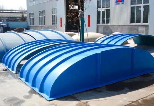 玻璃鋼憑借優(yōu)異的力學(xué)性能輕質(zhì)高強(qiáng),耐腐耐老化性,以及可設(shè)計性強(qiáng)的 特點,越來越成為化工防腐,污水處理等行業(yè)應(yīng)用的主流材料。 玻璃鋼在是目前池體加蓋應(yīng)用廣泛的一種材料,具輕質(zhì)高強(qiáng)、耐腐蝕性能好、造價低等諸多優(yōu)點。其相對密度在1.5~2.0之間,只有碳鋼的1/4~1/5,可是拉伸強(qiáng)度卻接近,甚至超過碳素鋼,而比強(qiáng)度可以與優(yōu)良合金鋼相比。玻璃鋼即FRP是良好的耐腐材料,對大氣、水和一般濃度的酸、堿、鹽以及多種油類和溶劑都有較好的抵抗能力。